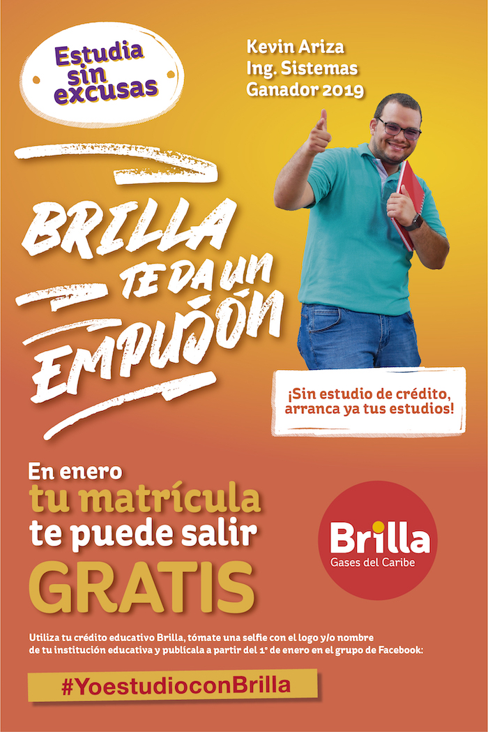 Cinco (5) matrículas gratis: tres en el Dpto. del Atlántico, una en el Dpto. de Magdalena y otra en el Dpto. del Cesar. A cada ganador se le condonará la totalidad de la deuda del crédito educativo que haya adquirido con Brilla, desde el 1° de diciembre de 2019 hasta el 31 de enero de 2020. Solo se condonará un crédito por ganador (en caso de que un usuario haya realizado más de un crédito educativo, se condonará el de mayor valor).